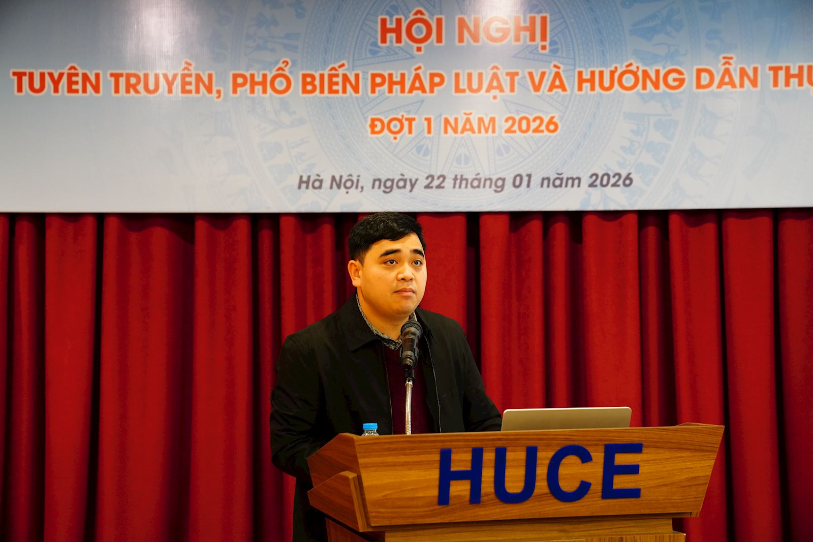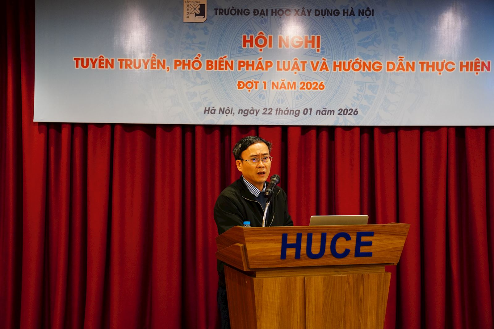 Ngày 22/01/2026, Trường Đại học Xây dựng Hà Nội đã tổ chức Hội nghị tuyên truyền, phổ biến pháp luật và hướng dẫn thực hiện các quy định mới về Luật giáo dục đại học và Luật nhà giáo. Hội nghị nhằm cập nhật kịp thời những nội dung pháp luật mới ban hành, góp phần nâng cao nhận thức, thống nhất cách hiểu và tổ chức thực hiện hiệu quả trong toàn trường.